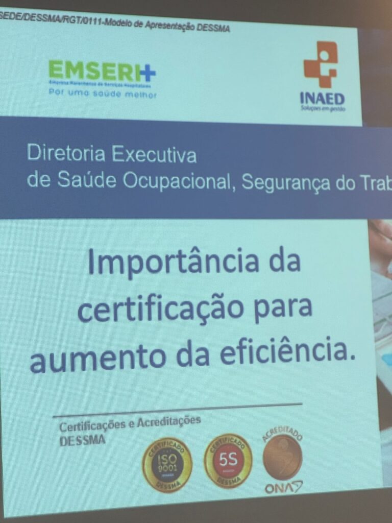No dia 29 de janeiro, a CEO do INAED, Jaqueline Pimentel, ministrou uma palestra na EMSERH (Empresa Maranhense de Serviços Hospitalares), abordando a importância da certificação como um fator estratégico para o aumento da eficiência organizacional. Durante o encontro, foram discutidos os impactos positivos da adoção de processos certificados na melhoria da gestão, na padronização de práticas e no fortalecimento da qualidade dos serviços prestados, especialmente no contexto da saúde pública. A palestra reforçou o papel da certificação como instrumento essencial para o aprimoramento contínuo e para a promoção de resultados mais sustentáveis nas instituições.